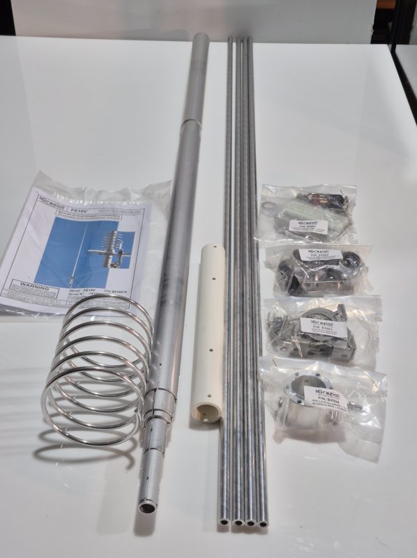 FE10V: The Grazioli FE10V is a high-performance 5/8 λ vertical antenna engineered for the 10m and 11m bands. Built to withstand 5kW CW continuous power, it delivers exceptional durability, low-angle radiation, and unmatched efficiency for serious DXers and high-power operators.