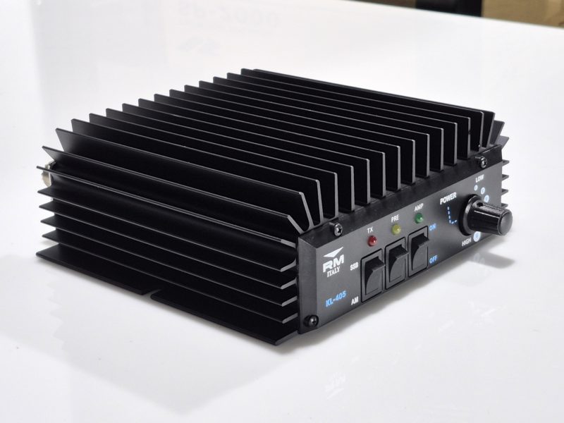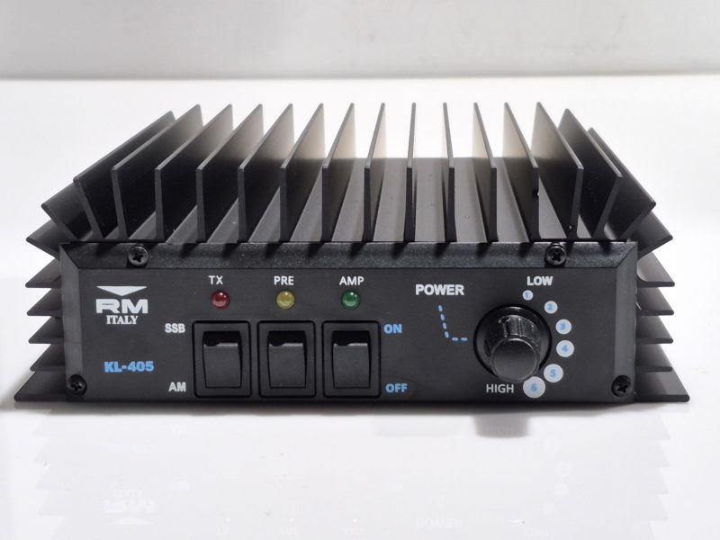 KL-405: The KL-405 is a 12V linear amplifier for use in the 10m band, with a drive power of 1 to 10W in all modes. KL-405 also has a preamplifier with electronic switching, which can be activated via a switch on the front, and a six-position power selector via a practical knob.