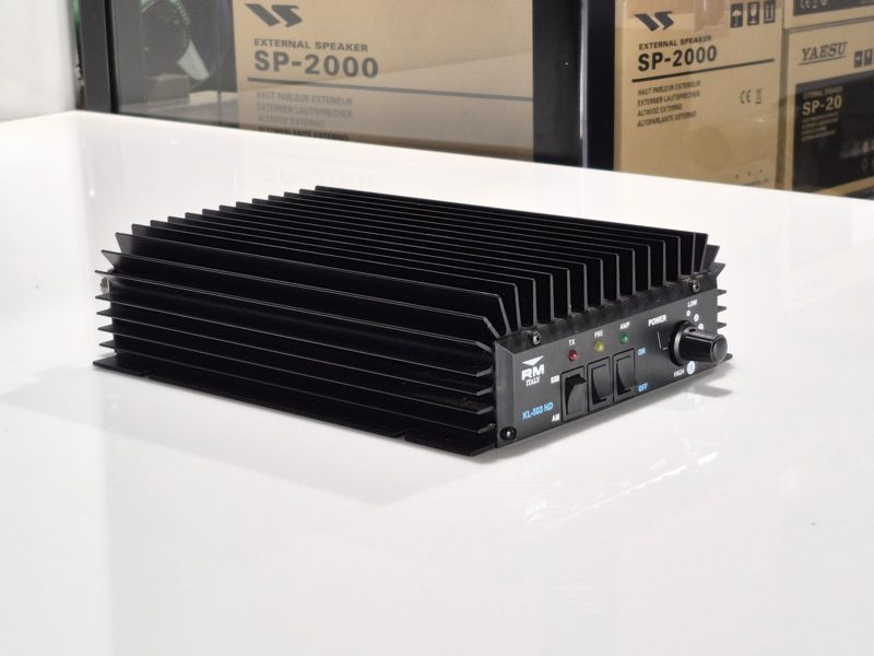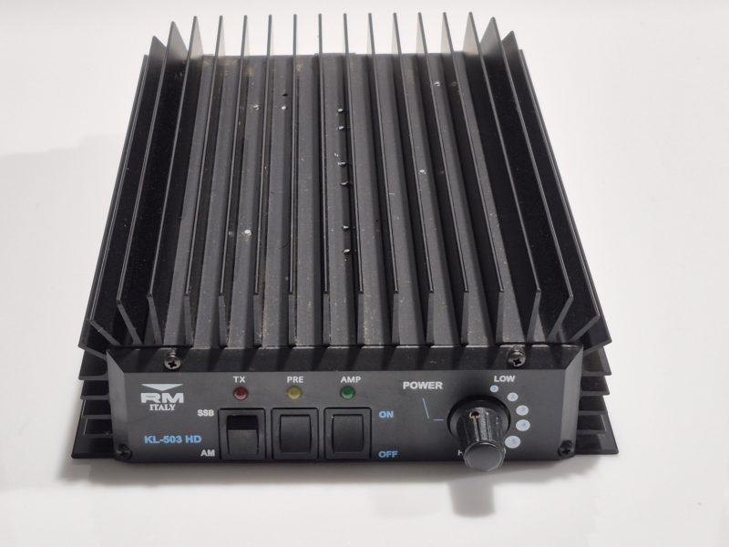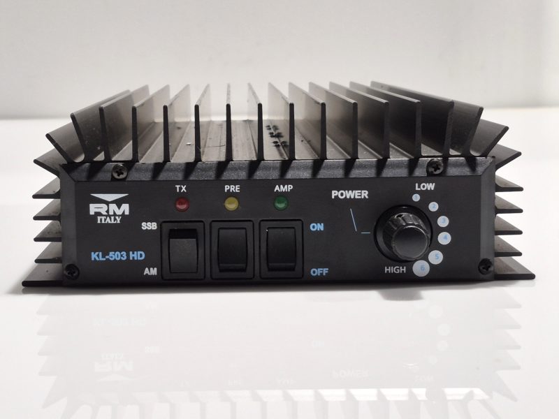 The KL 503 HD is a 12V linear amplifier for use in the frequency range 25 – 30 MHz, with a drive power of 1 to 35 W in all modes. The KL 503 HD features a six-position power selector via a a front panel knob and a RX preamplifier with electronic switching, which can be activated via a switch on the front panel.