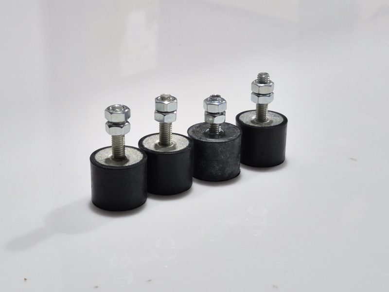 Set of 4 x bolt-on rubber feet with 25 x 5mm stud / 20 x 25mm round rubber pad suit RM Italy amplifiers. Raises and cushions amplifier from surface.